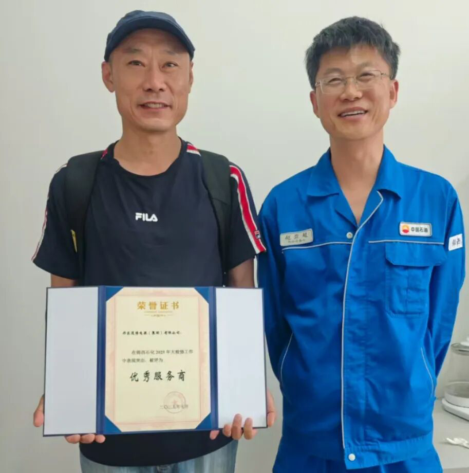 在剛剛結束的 2025 年錦西石化大檢修工作中,丹東通博集團憑借卓越的專業(yè)能力、高效的執(zhí)行團隊以及對客戶需求的精準把握,圓滿完成了各項艱巨任務,贏得了錦西石化的高度贊譽,并被授予 “優(yōu)秀服務供應商” 的殊榮。這一榮譽不僅是對通博集團此次檢修工作的肯定,更是對我們多年來深耕行業(yè)、堅持品質服務的有力認可。